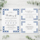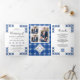 Blue Black Ukrainian Embroidery QR Code Wedding Tri-Fold Invitation