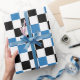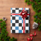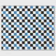 Blue Black White Checkered Pattern Design Wrapping Paper