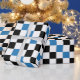 Blue Black White Chequered Pattern Design Wrapping Paper