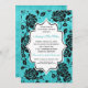 This elegant and modern distressed turquoise blue, black and white floral damask bridal shower invitation has large peony type flowers on it that have a subtle texturised look. It is fully customisable. The paper type is also customisable. If you require any other matching items, please email your request to niteowlstudio@gmail.com.