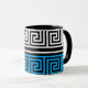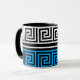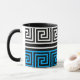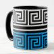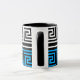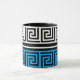 Blue and White Greek Key Fret Geometric Seamless Repeat Pattern Design On Black Background