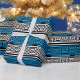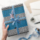 Blue Black White Greek Key Fret Pattern Design Wrapping Paper