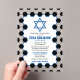 Soccer themed Bar Mitzvah acrylic invitation with a soccer ball background and blue accents. This soccer acrylic plastic Bar Mitzvah invitation is stylish and modern. This soccer themed Bar Mitzvah acrylic invitation features a black and white soccer ball pattern background with a Jewish Star of David. The colours on this unique soccer themed Bar Mitzvah design are blue, black, and white. Your son's name is in a bold sports style font.