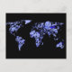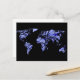 Blue black world map postcard