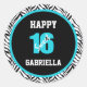 Personalised with name, blue and blackzebra trimmed Sweet 16 Birthday Stickers.