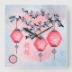 Blue blossom lanterns "Rise above" Asian design Square Wall Clock