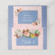 Blue Polka dots and stripes and Blush Pink Rose Gold Rose Bouquet Wedding Table Card