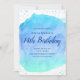 Blue blush watercolor stroke gold glitter invitation