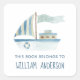 Blue Boat Nautical Boys Personalised School Square Sticker