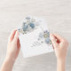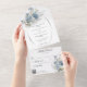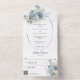 This All-in-One wedding invitation offers the combination of the soft white background with the striking ice blue bohemian flower bouquets, creating a harmonious and sophisticated look that perfectly reflects the beauty of your love story. The All-in-One wedding invitations are both beautiful and practical by combining the wedding invitation with an easy to remove perforated RSVP postcard. They are also quick and easy to prepare for mailing. Simply address the invitation, fold the back flap and seal with the included clear stickers. Once your guests receive the pre-addressed invitation they simply tear off the perforated RSVP card and drop it in the mail. The addition of the QR code allows your guests to easily access your wedding website for information including reception details and dinner choices!