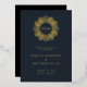 Gold Foil Pressed Dark Blue Celestial Monogram Wedding Save the Date Card with your monogram in a geometric sun drawing, elegant typography and a black backer. All colours can be changed.