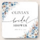 Blue Boho Floral Bridal Shower beverage coaster. This stylish & elegant Bridal Shower Invitation features gorgeous hand-painted watercolor Blue Boho Floral. Find matching items in the Blue Boho Floral Collection.