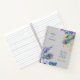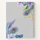 This Bridal Shower Guest Book notebook features modern floral bouquets in predominant colours of blue and violet at the top right and bottom left corner. The bouquets differ from each other, but are similar. The top has touches of pale gold. Each of them include a colourful boho style peacock feather. The floral images are placed on a silver grey background, with your custom text in blue grey in four fields at the sides. The back of the notebook has the floral images, but no text. Be sure to see the matching products in our store.