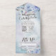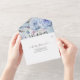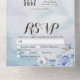 Modern Wedding Invitation with Detachable RSVP Postcard Template - Elegant Blue Watercolor Natural Boho Floral Feathers and Handwritten Script.