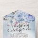 Blue Boho Flowers Feather Rustic Wood Wedding RSVP All In One Invitation
