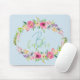 Blue Boho Pastel Floral Name Script Monogram Mouse Mat