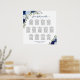 Looking for a stunning seating chart for your wedding reception? Look no further than this gorgeous design, featuring hand-painted watercolor roses in shades of dusty blue, navy, and indigo, surrounded by lush eucalyptus leaves and garden greenery. With space for 130 names across 13 tables of 10 seats each, this seating chart is perfect for a range of wedding sizes. The elegant script calligraphy adds a touch of sophistication, and there's even room for the names of the couple and the wedding date below. Whether your wedding is formal or casual, this beautiful boho chic seating chart strikes the perfect balance between rustic and classy, making it a great fit for any celebration.