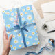 Blue Boho Spring Daisies Pattern Wrapping Paper