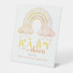 Blue Boho Watercolor Rainbow Baby Shower Pedestal Sign