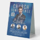 Religious Church Conference Service Event Sign Features Blue Bokeh Background & Silver Gradient Textured Typography. Customise To Your Liking.