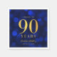 Elegant napkin featuring the words "Cheers to 90 Years" in faux gold foil against a sapphire blue bokeh lights pattern background.