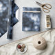 Stylish gift wrap features a cyanotype with a lovely mix of light to dark blue overlapping translucent circles. "Bokeh" is a Japanese word which describes a pleasing pattern in the out-of-focus areas of a photograph. The dots are referred to as "circles of confusion" in photography.