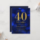 Classy 40th Birthday Party invitation featuring the words "Cheers to 40 Years" in faux gold foil against a sapphire blue bokeh pattern background. Invitation has a blue background back side.
