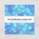 This square business card front and back features a blue bokeh background. It is designed as a business loyalty punch card. The ten punch circles are numbered on the back with a message of gratitude. Fill in the template fields with your information for the front and back, REMOVE the back text or click customise to select a typeface style, size, and colour you prefer.