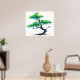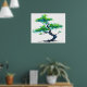 a traditional watercolour illustration of a bonsai tree in green and blue colours as a poster print