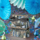 Blue Books and Flowers on Bookshelf Favor Boxes