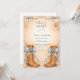 Celebrate a sweet western-inspired baby shower with this soft and charming Boots & Bows design. Featuring delicate pink bows tied around classic cowboy boots, warm neutral tones, and a cozy storybook aesthetic, this design feels both elegant and playful. Perfect for a girl baby shower with a subtle rustic twist, it blends western charm with gentle nursery sweetness. Ideal for hosts looking for a feminine, whimsical theme that feels timeless rather than trendy.