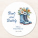 Blue Boots and Bubbly Blue Western Bridal Shower Round Paper Coaster