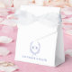 This elegant wedding favour box features a white background with a monogram surrounded by a botanical crest/frame with a ribbon in blue. Personalise it for your needs. You can find matching products at my store.
