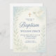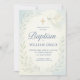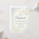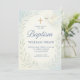 This elegant blue baptism invitation features a peaceful watercolor dove carrying an olive branch, a golden cross, and soft leafy botanical accents. Set in calming pastel tones with traditional serif and script fonts, this invitation is a beautiful choice for celebrating your baby boy’s special day.