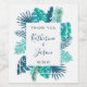 Modern blue green botanical wedding wine label for a beach or outdoor summer ceremony. Features wild foliage and palm leaves for a tropical island Hawaiian wedding. Great addition to your reception.