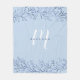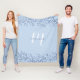Personalised blankets feature navy blue botanical leaves with big white monogram and name on light blue background, Great personalised gifts.