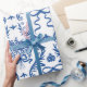Blue Botanical Ribbon Bouquet Wrapping Paper