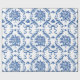 A graceful blue and white artwork featuring detailed rose bouquets tied with flowing ribbons, surrounded by ornate leafy flourishes and delicate decorative accents. The repeating arrangement creates a rhythmic, elegant look enriched with classic botanical charm and intricate linework that feels timeless and beautifully refined.