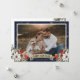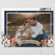 Celebrate the New Year with this blue photo New Year card featuring a watercolor painting of poinsettia, holly and red berries. Easily personalize this holiday card with your photo and text.