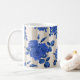 Blue bouquets of roses on a striped background coffee mug