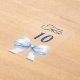 Personalize and your table numbers one by one. A clear background decorated with a large light blue colored bow.