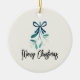 Blue Bow and Mistletoe Ceramic Tree Decoration