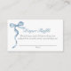 Diaper raffle ticket with watercolor blue bow. Please bring a pack of diapers of any size and you'll be entered to win a wonderful prize!