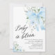 Blue Bow Baby in Bloom Floral Boy Baby Shower Invitation