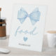 This food pedestal sign is perfect for your simple, modern baby shower or baby sprinkle. Features a blue watercolor coquette bow. You can personalise this design by clicking on "Personalise this template" or if you wish to change the font, colours or arrange the design elements in a different way you can click on "Edit using Design Tool".