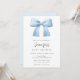 Celebrate an elegant baby shower with this blue bow party invitation, featuring a pretty watercolor illustration on a clean white background. Ideal for high tea, garden parties, or any baby celebration - honoring the mother to be in sophisticated style.