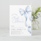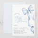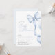 This elegant invitation features a charming light blue bow and romantic handwritten script, perfect for a whimsical baby boy shower. The chic ribbon and preppy design add a touch of sophistication, while the editable template allows for easy customisation. Create a beautiful and memorable invitation for your special event.