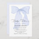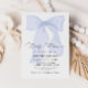 Celebrate the upcoming arrival of a baby boy with this Blue Bow Baby Shower Invitation! Featuring a beautifully illustrated bow, soft pastel hues, and elegant typography, this timeless design sets the perfect tone for a sophisticated and memorable celebration. Personalise it with your event details for a unique touch!