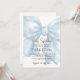 This Chic Oversized Bow Baby Shower Invitation features a bold blue bow that takes center stage, covering nearly the entire design. The bow makes a refined statement, complemented by the simple "Baby Shower" at the top, displayed in a mix of soft gray handwritten script and classic serif fonts. The blue background, with subtle off-white accents, adds a modern, elegant touch—perfect for a baby boy shower or for a mom-to-be who loves blue.