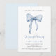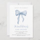 Celebrate an elegant boy baby shower with this blue bow party invitation, featuring a pretty watercolor illustration on a clean white background. Ideal for high tea, garden parties, or any baby celebration - honouring the mother to be in sophisticated style.